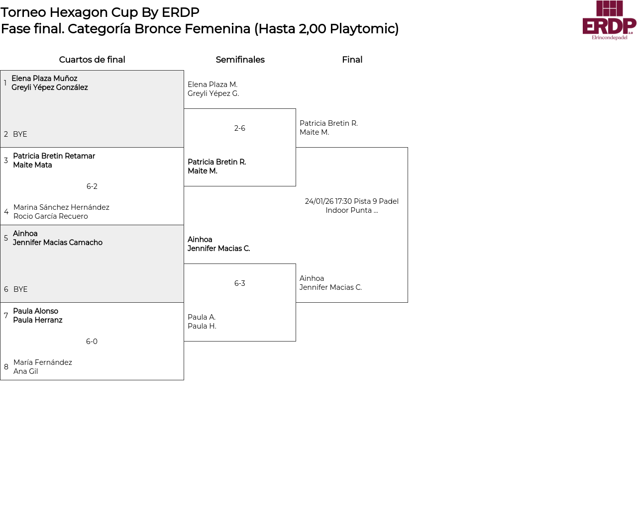 Cuadro principal Categoría Bronce Femenina (Hasta 2,00 Playtomic)